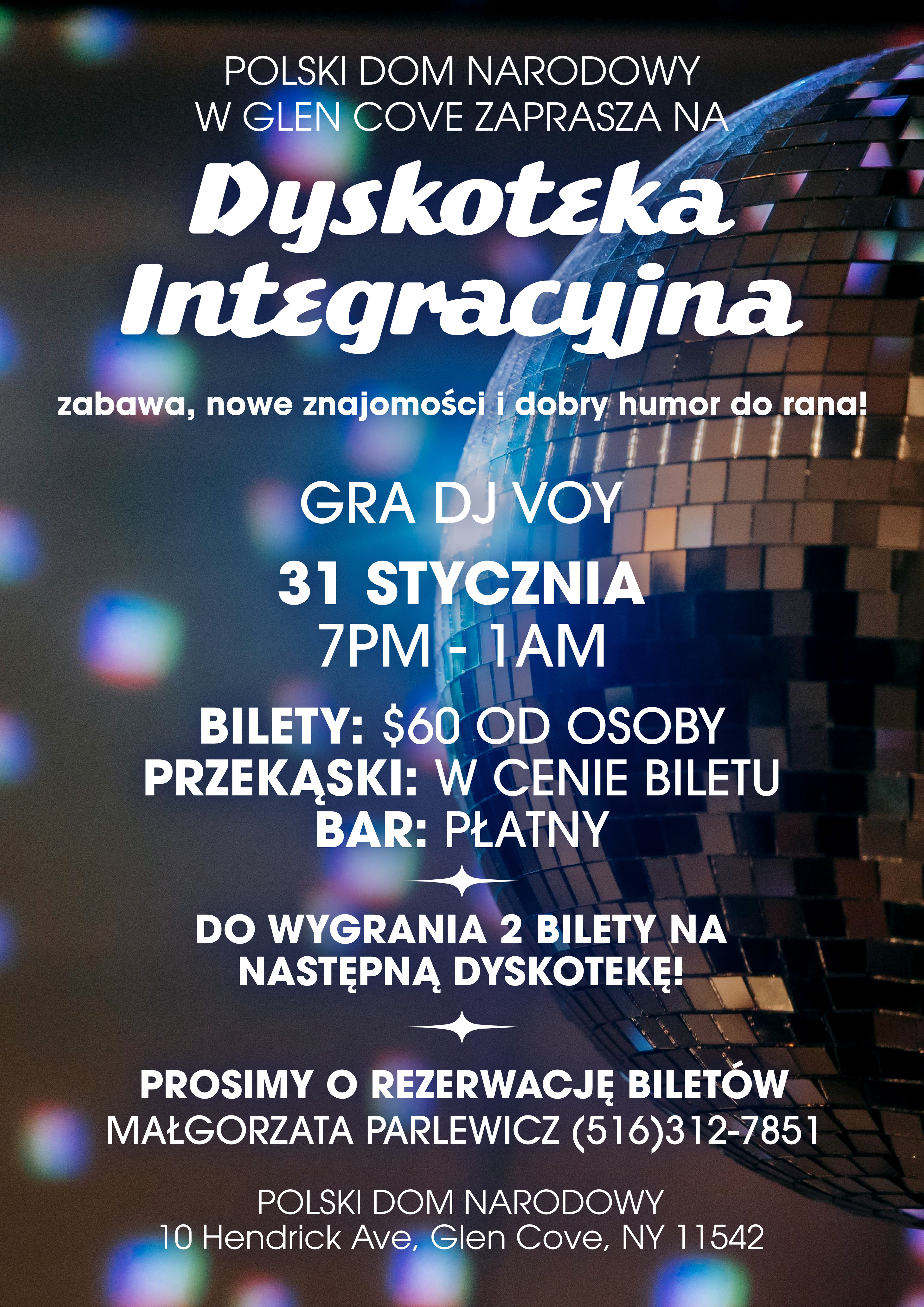 An A2 poster designed in Adobe Illustrator for the Polish National Home in Glen Cove, NY, advertising a new disco/mixer. This party was being hosted with the intention of bringing younger Polish speaking people into the Polish National Home, so the poster had to be appealing to younger viewers while also not excluding older viewers and current Polish National Home members from the invitation. ITC Avant Garde Gothic Pro is used for the body copy for its clean sans serif look, its variety of weights, its high legibility, and its support of the Polish language including all of the necessary diacritics (tails, strokes, overdots). The CC Speeding Bullet display font was purchased on PixelSurplus and the background photograph was downloaded from Pexels.